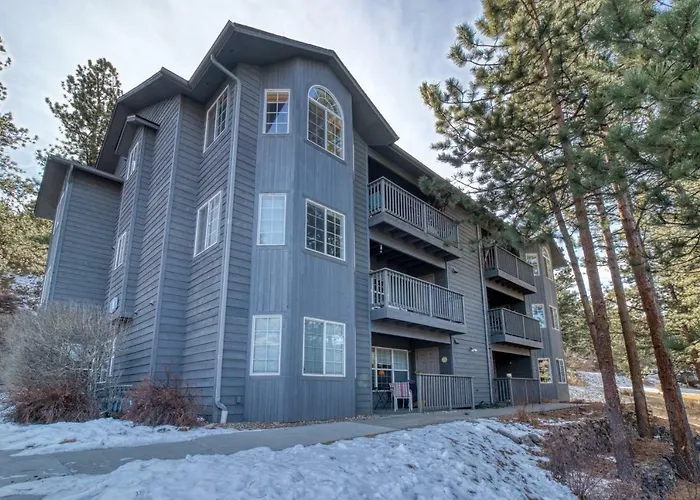 The Estes Park villa features a sunny patio for guests' comfort. A patio, a game area and a golf course are available on the premises.